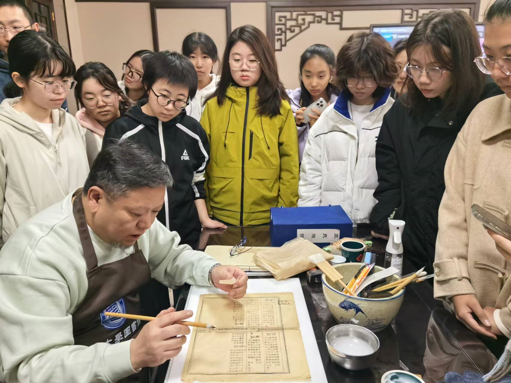 、吉林大学“数智+”创新创业实践示范基地以及吉林大学图书馆,携手在吉林大学中心图书馆六楼古籍修复中心进行古籍档案修复实践活动。本次活动吸引了60余名学生参加,吉林大学图书馆禹平馆长、古籍部张奇老师,以及黄瓜视频