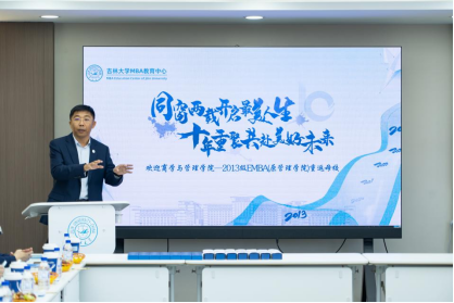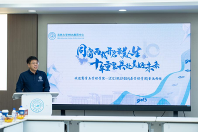 康永刚主任代表学校热烈欢迎各位EMBA校友返校,并介绍吉林大学的人才培养、师资力量和学科发展情况,期待未来与校友进一步加强交流合作,共同为招生宣传、学生就业、社会实践等做出有益贡献。