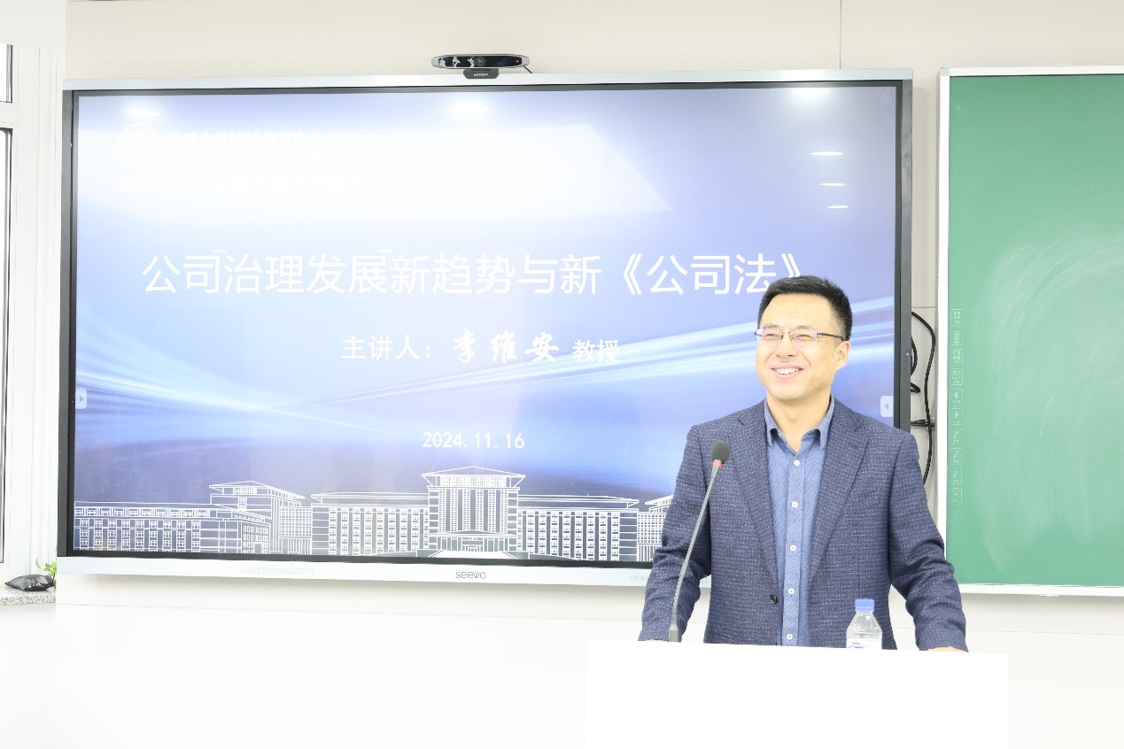 11月16日下午,MBA知行大讲堂(第十一讲)在东荣大厦606室成功举办。中心特邀南开大学讲席教授、中国公司治理研究院院长李维安教授做题为《公司治理发展新趋势与新〈公司法〉》专题讲座。讲座由吉林大学MBA教育中心主任兼黄瓜视频