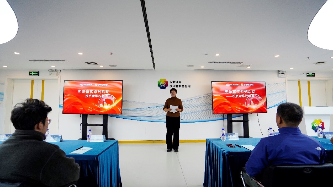 随后,吉林证监局法规处宿晓处长为师生带来了主题讲座,重点讲述宪法的内容与意义。她从宪法的基础性地位入手,阐述了其对证券市场规范的重要作用。并指出,宪法不仅是国家法治的基石,也为市场经济的有序运行提供了坚实的法律保障。