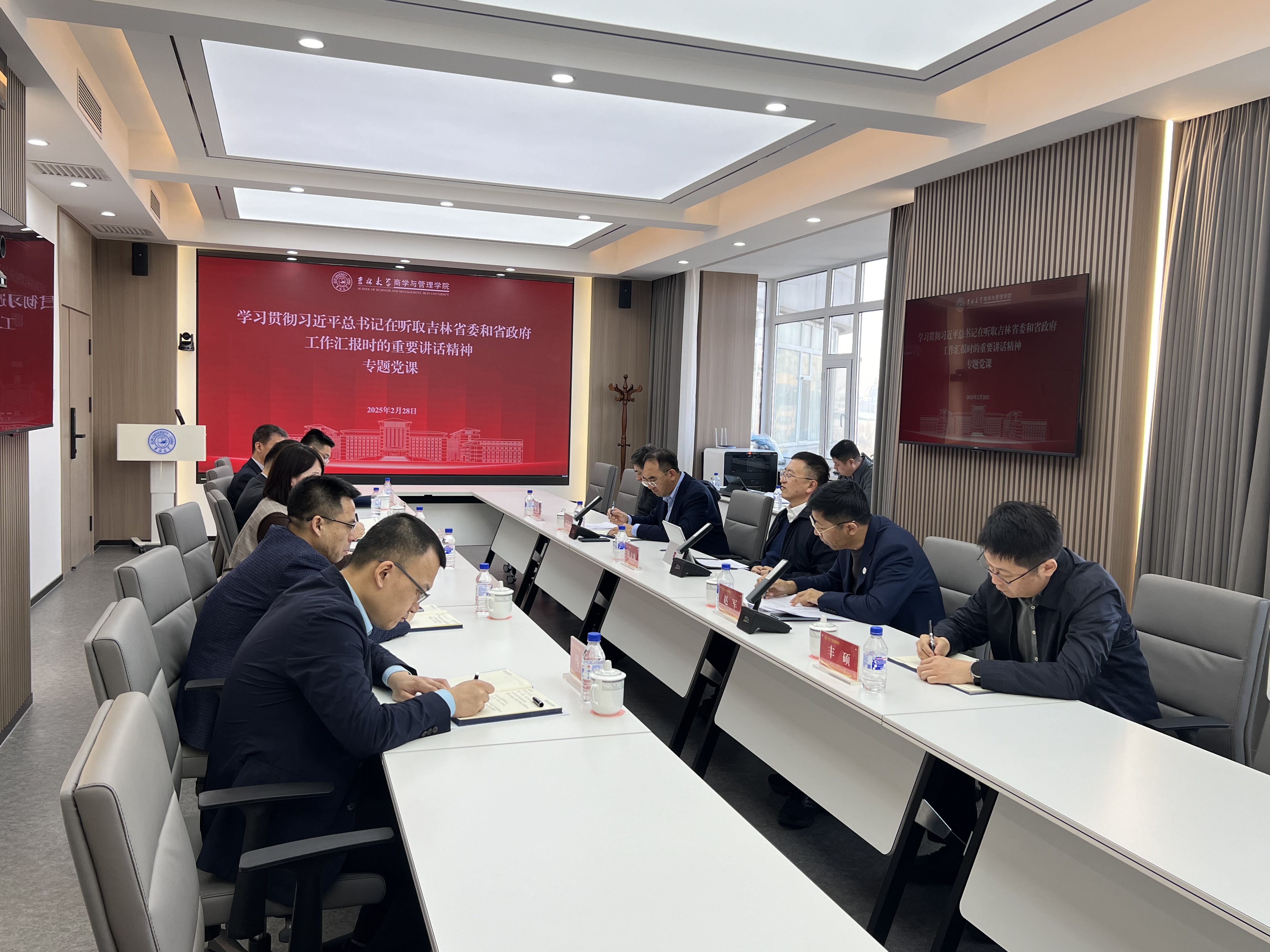 会上,蔡立东教授领学了习近平总书记在听取吉林省委和省政府工作汇报时的重要讲话精神,并分享了学习体会。他在发言中表示,习近平总书记在春节期间专程来到辽宁、黑龙江、吉林考察,让我们深切感受到党中央推动新时代东北全面振兴的坚定决心。习近平总书记的讲话深入探讨了吉林全面振兴的理论问题和实践问题,对事关吉林发展的各项重要事业进行了全方位的部署,具有极强的政治性、思想性、指导性和实践性。我们要从拥护“两个确立”,做到“两个维护”的政治高度出发,认真学习领会习近平总书记的重要讲话精神,全面把握其核心要义和实践要求,努力将学习成果转化为推动学院高质量发展的实际行动和精神动力。