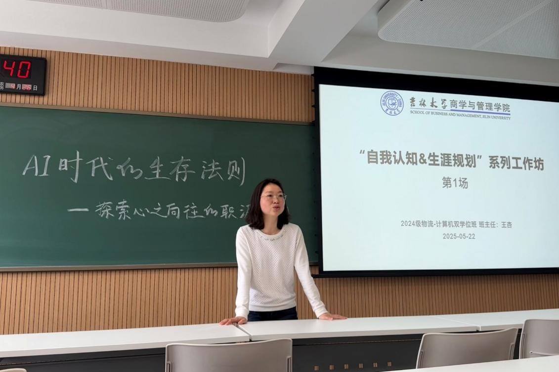 2024级物流管理-计算机双学位班在敬信楼E507举行“AI时代的生存法则——探索心之向往的职涯规划”主题班会。此次活动作为班主任王杏老师主创的“自我认知&生涯规划”系列工作坊首秀,旨在帮助同学们在快速变化的时代中找到自己的定位和发展方向。整个系列工作坊将一共分成八场进行,贯穿2025年度的两个学期。