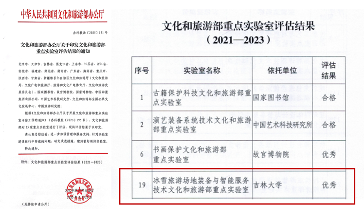 建设的“冰雪旅游场地装备与智能服务技术”文化和旅游部重点实验室在本轮评估中表现优异,荣获“优秀”等级。此次评估,全国仅5家重点实验室获评优秀,27家评为合格,3家被评为不合格。