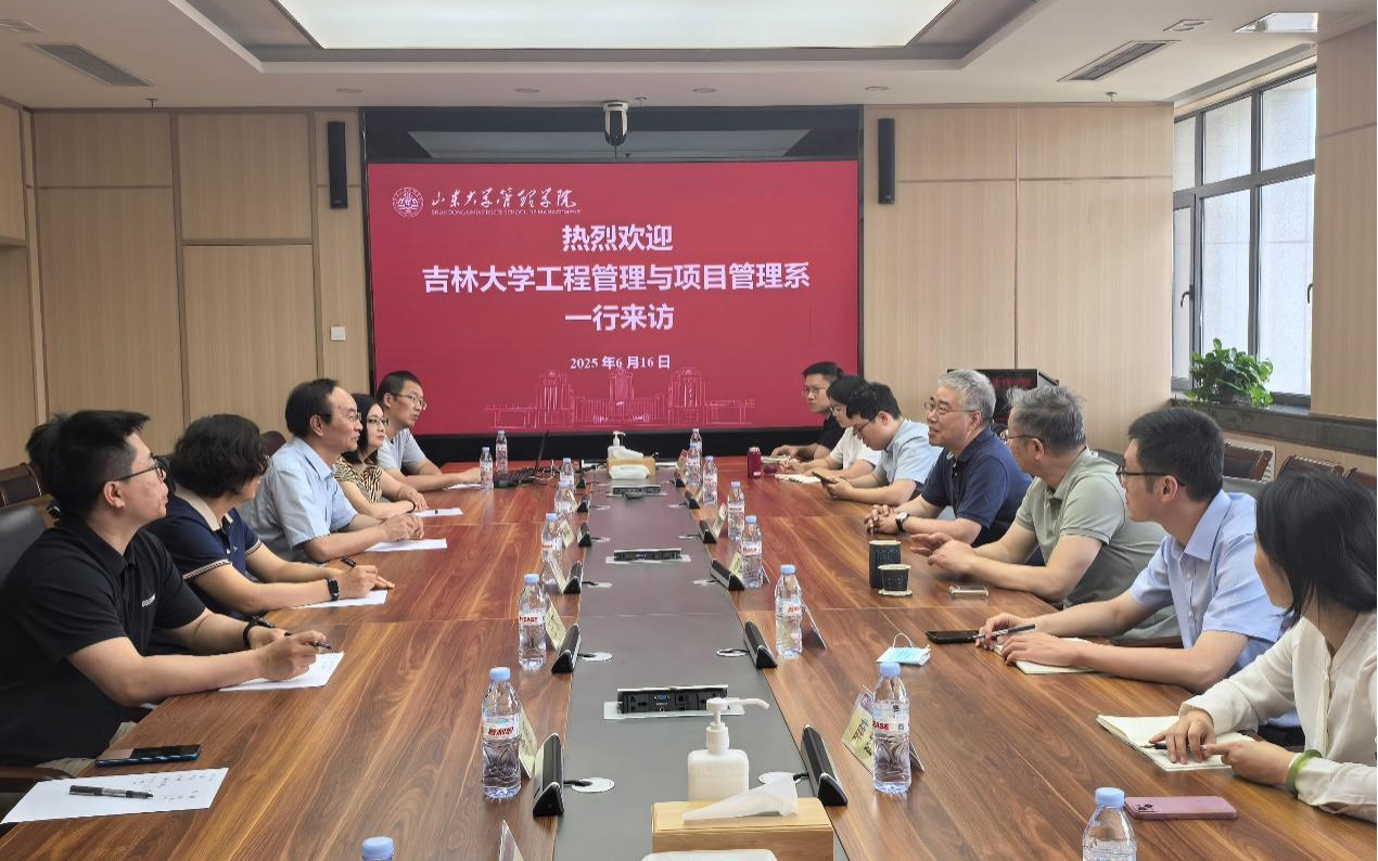 6月16日下午,调研组抵达山东大学中心校区管理学院。山东大学管理学院院长丁贵荣、原长助理兼项目管理与工业工程系系主任于国栋、原项目管理与工业工程系系主任孙涛、党支部书记谢磊等8位骨干教师接待了调研团。首先,于国栋教授表达了对吉林大学调研团队的热烈欢迎。其次,院长丁贵荣逐一介绍了山东大学项目管理与工业工程系骨干教师特长及专业发展特色、发展方向。其次,孙涛教授等骨干教师与调研团队就本科与研究生培养模式、实验室建设、人才引进、国际交流及管理制度创新等核心议题展开了热烈的探讨。最后,双方还就未来在“工业工程+智能制造”方向的师资交流、课程资源共享等方面的合作可能性展开了充分交流。