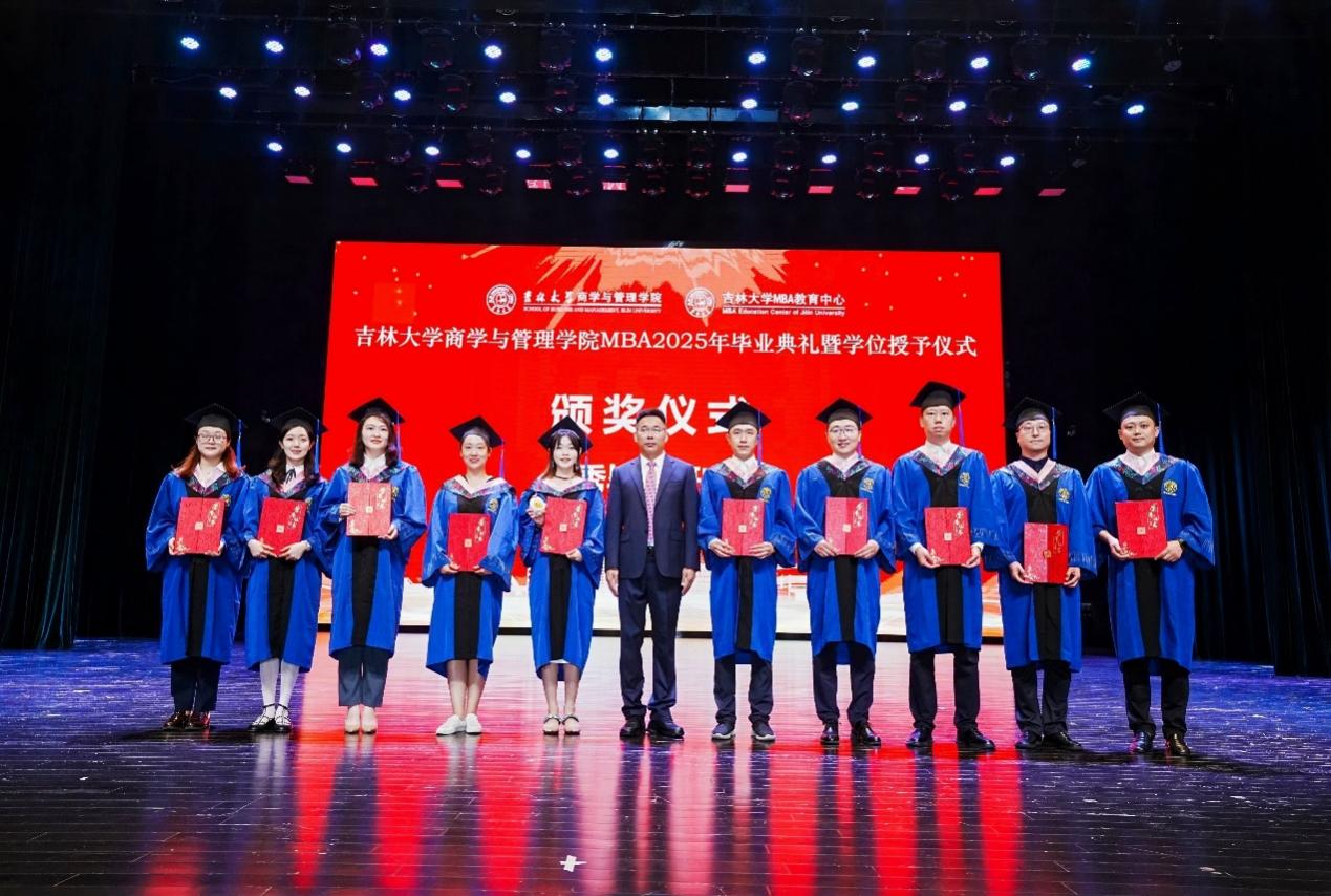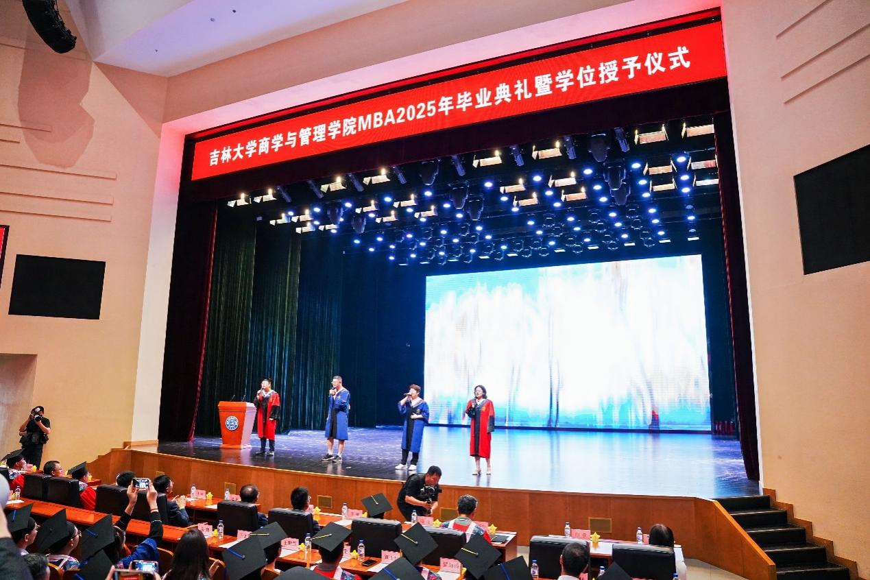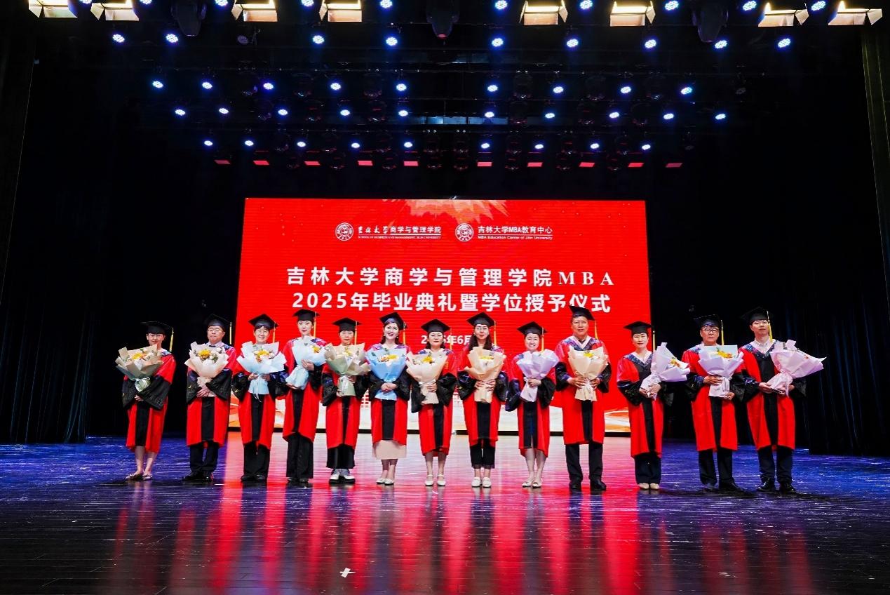 2025年MBA毕业典礼暨学位授予仪式在经久不息的掌声中圆满落下帷幕。这场盛典,既是对毕业生们学业征程的荣耀加冕,更是一场激荡着吉大精神的传承仪式。仪式镌刻下的不仅是 “吉大MBA”的金色印记,更将 “求实创新、励志图强”的校训熔铸成学生们前行的精神灯塔。从师长手中接过的学位证书,凝聚着课堂思辨的智慧、实践磨砺的锋芒,此刻正化作扬帆起航的风帆。愿 2025 届毕业生们携母校 “以诚信为裳,以创新为剑”的嘱托,在时代浪潮中锚定航向,以踔厉奋发之姿于商场挥写新篇,让吉大商管学院MBA的旗帜熠熠生辉。
