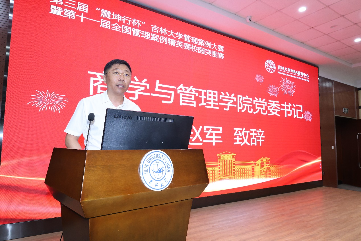 赵军在致辞中向出席大赛的各位领导、评委、专家表示诚挚的感谢。他指出,真正的管理智慧,既要扎根中国大地,又要放眼全球视野。学院始终以案例教学为核心引擎,构建起覆盖本土案例开发、校企协同实践、跨学科思辨的生态体系。他强调,案例大赛是检验真知的战场,更是培育英才的熔炉。管理案例的本质,是用中国故事诠释管理规律,以本土智慧回应全球挑战。通过模拟真实商战,让同学们在复杂情境中锤炼战略思维,在团队协作中锻造领导力,在创新破局中领悟管理本质。他勉励同学们要珍惜这场思想盛宴:既要展现专业深度,更要迸发创新火花;既要尊重商业逻辑,更要彰显人文关怀。在分析中沉淀洞见,在辩论中升华知识,让这段经历成为职业生涯的宝贵财富。