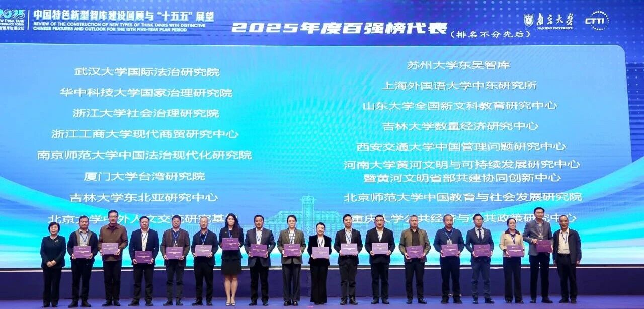 2025年11月21日,“2025新型智库治理论坛”在南京顺利召开,会上公布了CTTI2025年度智库建设最佳案例和优秀研究成果的征集与推介结果以及CTTI2025高校智库百强榜,吉林大学数量经济研究中心入选CTTI2025年度来源高校智库百强榜A+并获评两项CTTI智库研究优秀成果二等奖,中心副主任王林辉教授代表参会并上台领奖。